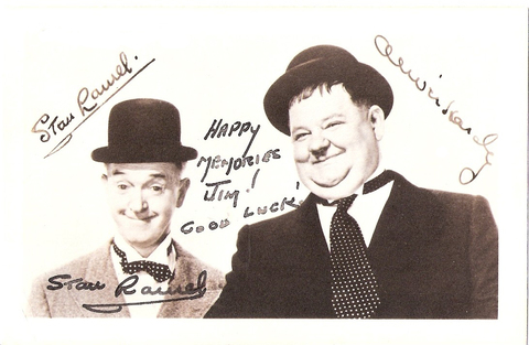 Although "Babe" Hardy died two weeks before I was born, I have been a fan of Stan's and Ollie's since my early boyhood. Ollie's partner, Stan Laurel, who survived him by seven years, answered every fan letter personally and kept his name and telephone number listed in the Santa Monica phone directory so that fans could call or write to him. In 1964 he answered a fan letter from a little boy by sending him this signed photo of Laurel and Hardy.